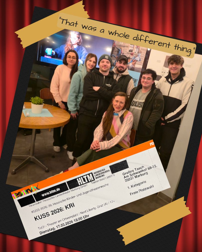 Mitten in einer Phase voller Klausuren bot das KUSS Theaterfestival mit dem Stück „KRI“ eine willkommene Unterbrechung für die Studierenden der Q2. Der zweite Theaterbesuch innerhalb von vier Monaten ermöglichte es, den Kopf für einen Moment vom Klausurenstress freizubekommen und sich auf etwas völlig anderes einzulassen.